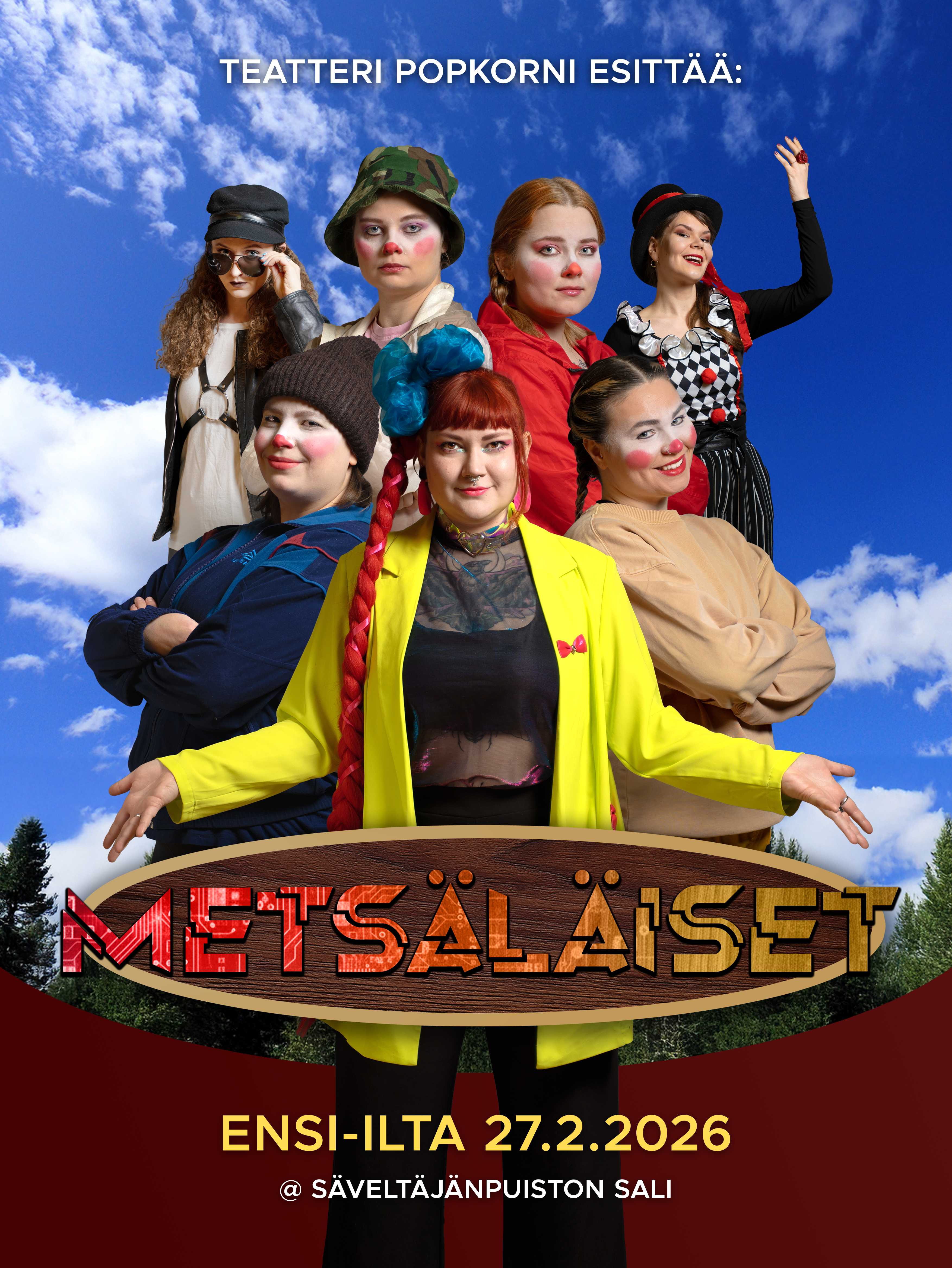 Teatteri Popkornin uusi komedianäytelmä Metsäläiset ensi-illassa 27.2.2026 Pukinmäessä Säveltäjänpuiston salissa.